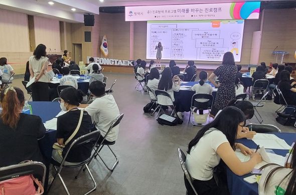 [제주교통복지신문 김강석 기자] 평택시는 지난 22일 평택시청 대회의실에서 학년 전환기 중3 학생들을 위한 진로 탐색 프로그램 ‘미래를 바꾸는 진로캠프’를 개최했다.