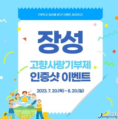 [제주교통복지신문 김강석 기자] 장성군이 고향사랑기부제 활성화를 위한 ‘고향사랑기부 인증샷 이벤트’를 오는 8월 20일까지 연다.