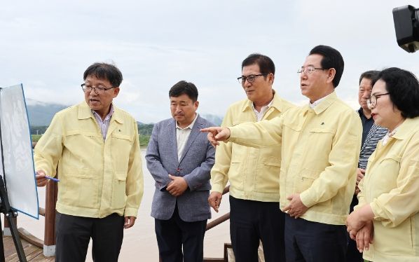 하천범람 및 산사태 우려 지역 주민 18세대 25명을 사전 대피시켰으며, 침수로 인한 국도 1호선 엄다 지하차도와 학교면 고막리, 석정리 구간 군도 5호선을 전면 통제하고 있다