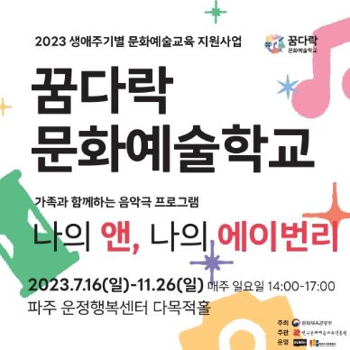 [제주교통복지신문 김강석 기자] 파주도시관광공사가 2023 꿈다락 문화예술학교로 파주시민들과 만난다. 특히 이번 2023년에는 종합예술단체 하랑씨어터와 공동기획한 프로그램으로 유아동에서부터 가족단위까지 폭넓은 대상을 만나고 있다.