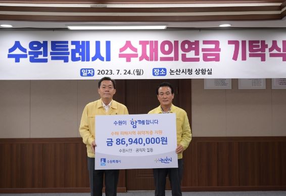 [제주교통복지신문 김강석 기자] 논산시의 자매결연 도시 중 하나인 수원특례시가 시민사회의 뜻이 담긴 수해복구 성금을 논산시로 기탁했다.