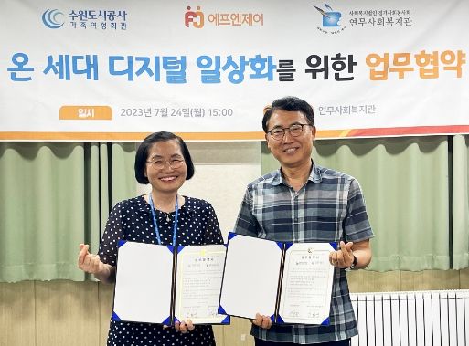 [제주교통복지신문 김강석 기자] 수원도시공사가 운영하는 수원시가족여성회관은 24일 연무사회복지관과 디지털로 맞잡고 찾아가는 키오스크 사업과 지속 가능한 사회공헌 및 연대활동을 위해 업무협약을 했다고 밝혔다.