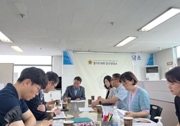 [제주교통복지신문 김강석 기자] 경기도의회 농정해양위원회 강태형 의원(더불어민주당, 안산5)은 지난 20일 경기도의회 안산상담소에서 경기도 농수산생명과학국 진학훈 농업정책과장, 이문무 친환경농업과장, 안산시 김행련 농업정책과장, 안산시 김민 농업기술센터장 등 관계자 13명과 주요 현안에 대한 정책간담회를 개최했다.