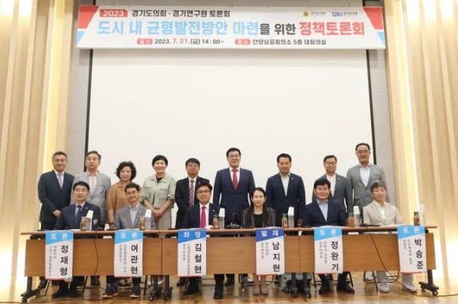 [제주교통복지신문 김강석 기자] 경기도의회 기획재정위원회 김철현 부위원장이(국민의힘, 안양2) 좌장을 맡은 '도시 내 균형발전방안 마련 '토론회가 21일, 안양시 상공회의소 5층 대회의실에서 개최됐다. 본 토론회는 도시 내 신·구도심의 상생발전 방안을 찾고자 경기도의회와 경기연구원이 공동으로 주관했다.
