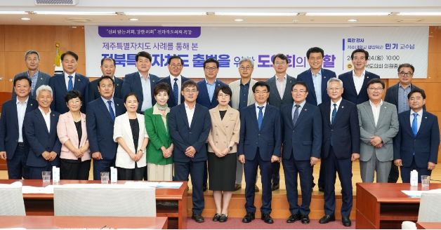 [제주교통복지신문 김강석 기자] 전라북도의회(의장 국주영은)는 24일 의원총회의실에서, 내년 1월 전북특별자치도 출범을 앞두고 전라북도의회의 역할을 모색하는 특강을 실시했다.