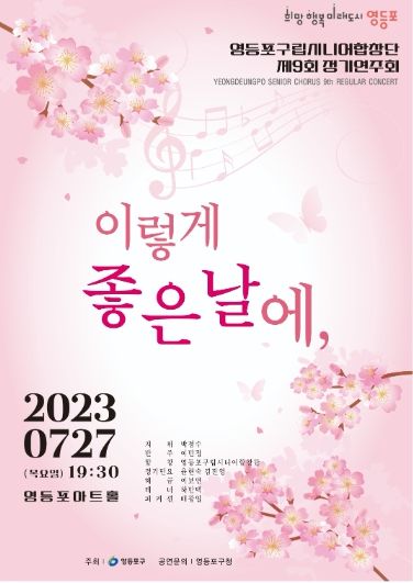 [제주교통복지신문 김강석 기자] 영등포구 대표 구립 예술 단체, 영등포구립시니어합창단이 7월 27일 영등포아트홀에서 ‘제9회 정기연주회’를 개최한다고 밝혔다.
