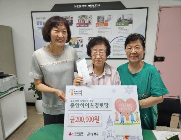 [제주교통복지신문 김강석 기자] 중랑구는 지난 24일 신내1동 소재 중앙하이츠 아파트 경로당으로부터 집중호우 피해지역 복구를 위한 성금 20만 원을 전달받았다고 밝혔다.