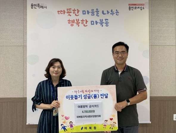[제주교통복지신문 김강석 기자] 용인특례시 기흥구 마북동은 동 지역사회보장협의체가 지난 21일 저소득 가구 청소년 47명에게 10만원이 충전된 급식카드를 지원했다고 25일 밝혔다.