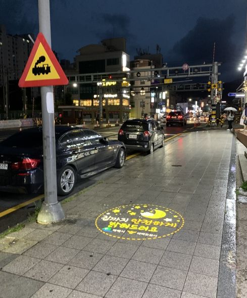 로고젝터의 문구는 ▲‘여성안심귀갓길 우리 함께 만들어가요’, ▲‘No Smoking’등의 내용을 담았다.