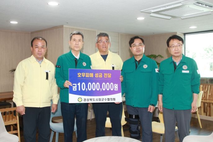 또, 조재구 대구시 남구청장은 대한민국시장군수구청장협의회에서 마련한 성금 500만원을, 이강덕 포항시장은 경북시장군수협의회에서 모은 성금 1,000만원을 직접 전했다.