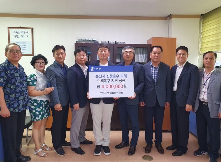 [제주교통복지신문 김강석 기자] 수원시 방위협의위원회가 “자매도시 논산시의 호우피해 긴급 복구에 사용해 달라”며 회원들이 모은 구호성금 400만 원을 수원시에 기탁했다.