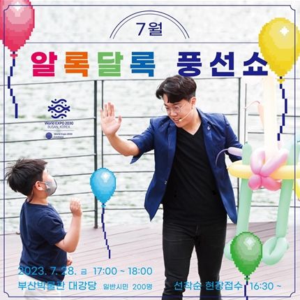 [제주교통복지신문 김강석 기자] 부산박물관은 오늘(28일) 오후 5시, 부산박물관 대강당에서 7월 문화가 있는 날 공연으로'알록달록 풍선쇼'를 개최한다고 밝혔다.