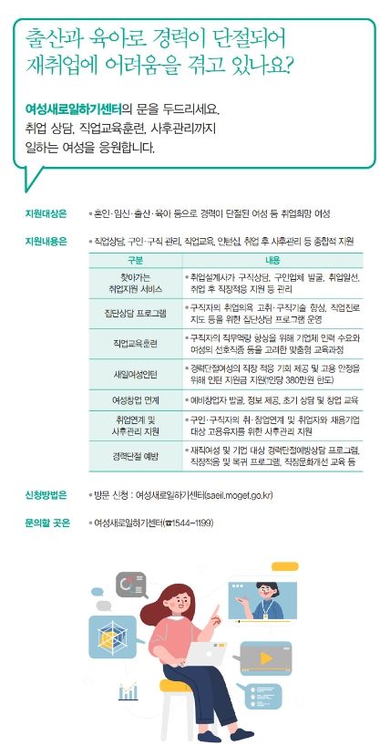 취업 상담, 직업교육훈련, 사후관리까지 일하는 여성을 응원합니다.