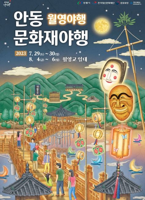 [제주교통복지신문 김강석 기자] 안동시가 오는 7월 29일(토)부터 30일(일)까지, 또, 8월 4일(금)부터 8월 6일(일)까지 두 차례에 걸쳐 닷새간 한국정신문화재단 주관으로 월영교 일원에서 2023 안동 문화재야행(월영야행)을 개최한다.