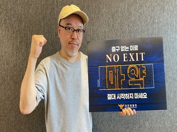 [제주교통복지신문 김강석 기자] “이끼, 내부자들, 미생”의 작가 윤태호, “팬텀싱어, 미스터 트롯” 출신가수 류지광은 대전동부경찰서가 추진하는 마약 없는 대전 만들기 ‘NO EXIT’ 릴레이 캠페인에 동참했다.