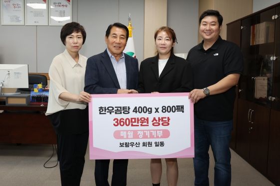 [제주교통복지신문 김강석 기자] 청년봉사단체 ‘보람우산’에서 지난 24일 양산시를 방문해 360만원 상당의 한우곰탕(400g 800포)을 기부하면서 매월 정기적인 기부를 약속했다.