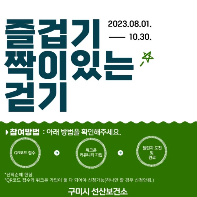 구미시민이면 누구나 챌린지에 참여할 수 있으며, '워크온' 애플리케이션을 설치한 뒤 챌린지 화면에서 '즐겁기 짝이 있는 걷기(8월)'에 참여하기를 선택하고 앱을 켠 후 휴대전화를 소지한 채로 자유롭게 걷기를 진행하면 된다.