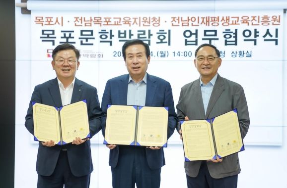 [제주교통복지신문 김강석 기자] 목포시가 지난 24일 ‘2023 목포문학박람회’의 성공 개최를 위해 전남목포교육지원청, 전남인재평생교육진흥원과 업무 협약을 체결했다.