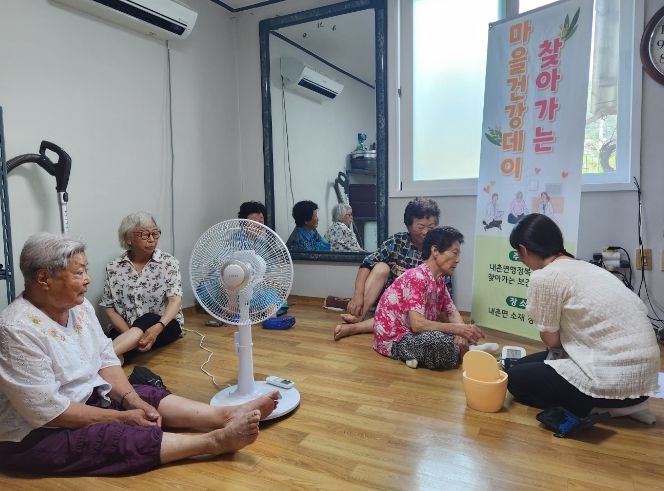 지난 24일 내2리 경로당을 시작으로 차례차례 관내 경로당을 직접 방문해 혈압·혈당 측정, 건강면접조사표 작성, 만성질환 관리 및 건강증진 상담, 여름철 폭염 관련 건강관리 교육 등을 진행하고 있다..