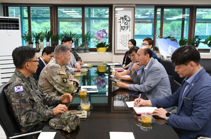[제주교통복지신문 김강석 기자] 동두천시는 지난 24일 박형덕 동두천시장과 윌리엄 D. 행크 테일러 미2사단/한미연합사단장이 한미 관계 강화와 협력 방안에 대해 환담을 나누었다고 밝혔다. 이번 면담은 미2사단/한미연합사단장이 지난 5월 16일 취임 후 공식적으로 동두천시장을 방문하여 성사됐다.