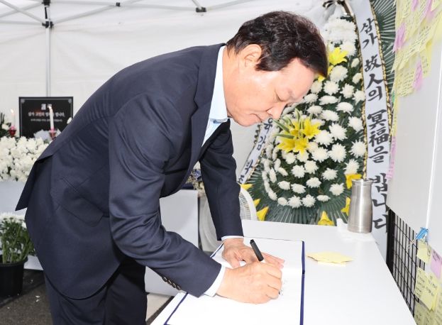 박 도지사는 분향소에 마련된 방명록에 ‘삼가 고인의 명복을 빕니다. 우리 사회가 다시는 이런 안타까운 일이 일어나지 않도록 사회적 합의와 노력이 필요합니다’라고 적었다.