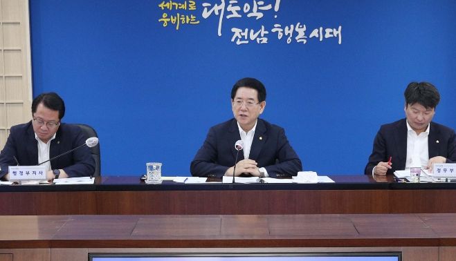 김영록 지사는 이날 오전 도청 서재필실에서 실국장 정책회의를 열어 “경북과 충북 등 전국에서 47명의 사망자가 나온 것에 깊은 애도를 표한다. 피해 지역 복구 지원이나 위문활동에 적극 나서자”며 이같이 밝혔다.