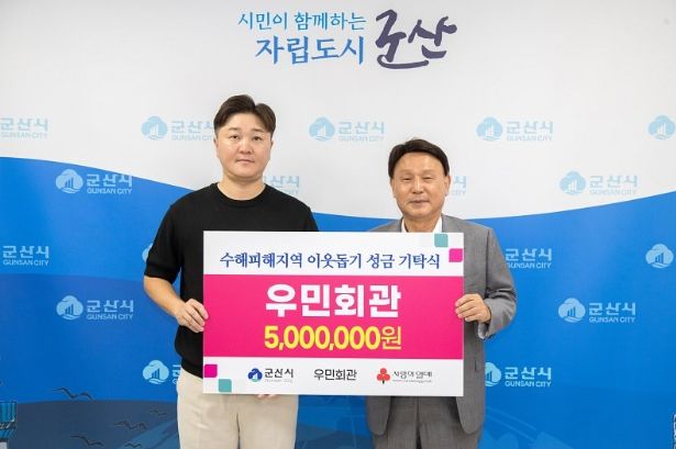 [제주교통복지신문 김강석 기자] 군산 경장동에 위치한 우민회관(대표 엄익두)이 이번 집중호우로 인해 피해를 입은 주민들을 지원하고자 군산시에 성금 500만원을 전달했다.