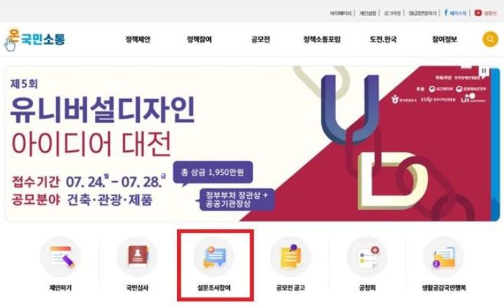 이와 더불어 행정안전부에서 운영하는 '온국민소통' 누리집을 통해서는 별도의 서류(파일)를 제출하지 않고 질문별 답변에 표시하여 빠르게 설문조사에 응할 수 있다.