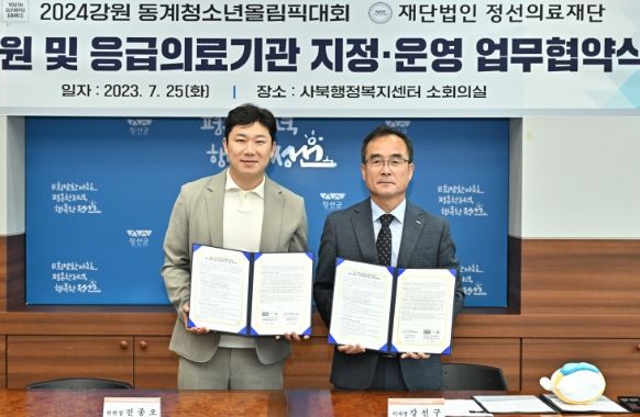 정선의료재단과 강원동계청소년올림픽대회 조직위원회는 25일 사북읍행정복지센터에서 진종오 2024 강원 동계청소년올림픽대회 조직위원회 위원장, 김재원 대회운영본부장 등 조직위 관계자와 강선구 정선의료재단 군립병원 이사장, 지경천 정선의료재단 군립병원장, 신애정 보건소장 등 15여명이 참석한 가운데 정선의료재단 군립병원의 2024년 강원 동계청소년올림픽대회 공식 병원 지정․운영 업무협약을 체결했다.