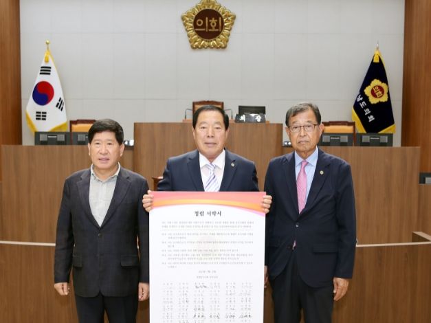 이날 도의회 소속의원 전원은 청렴 서약을 통해 적극적인 반부패·청렴 의지를 표명하고, 청렴한 조직문화 지향을 상징하는 ‘청렴은 더하고, 부패는 빼고’ 구호 제창을 통해 청렴 으뜸 의회로의 지향을 명확히 했다.