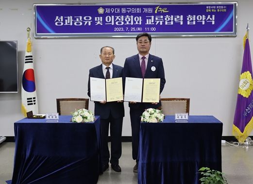이날 동구의회는 지난 7월 14일 제정된 조례 제1428호 [부산광역시 동구의회 의정회 교류·협력 활성화에 관한 조례]를 근거로, 지역발전을 목적으로 구성된 동구의회 전직의원 모임인 의정회와의 교류협력 협약식을 통해 동구의회와 의정회간 상호 친선 우호와 지방의회 발전 방향에 대한 공동 관심사항에 대해 적극적으로 교류·협력할 것을 약속했다.