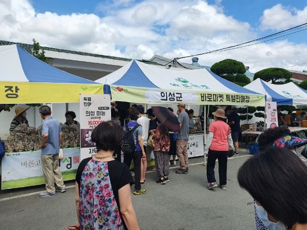 한편 바로마켓 경상북도점은 4월 8일부터 개장하여 12월 3일까지 매주 토·일요일 주 2회 경북도농업자원관리원에서 운영되고 있으며, 지난 6월까지 의성군 농특산물은 10개 농가가 참여해 6천만원 정도의 매출을 올리고 있다.