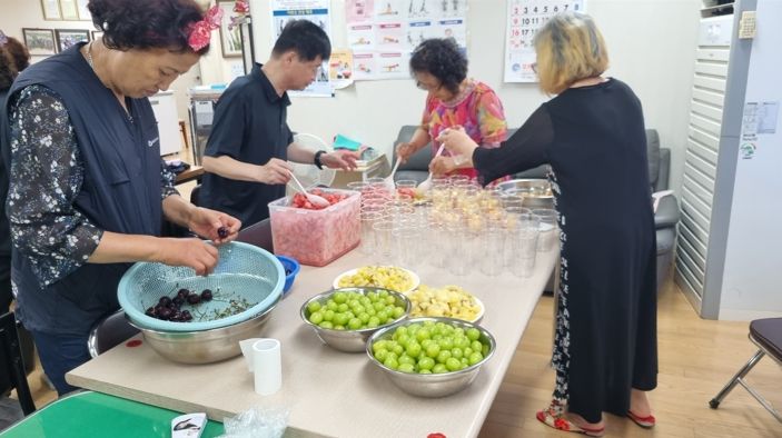 [제주교통복지신문 김강석 기자] 인천시 남동구 간석3동 행정복지센터는 최근 통장 공동체 모임 ‘엄지척’이 직접 만든 과일 컵 50개를 간석LH1단지 경로당 및 독거노인 50명에게 전달했다고 26일 밝혔다.
