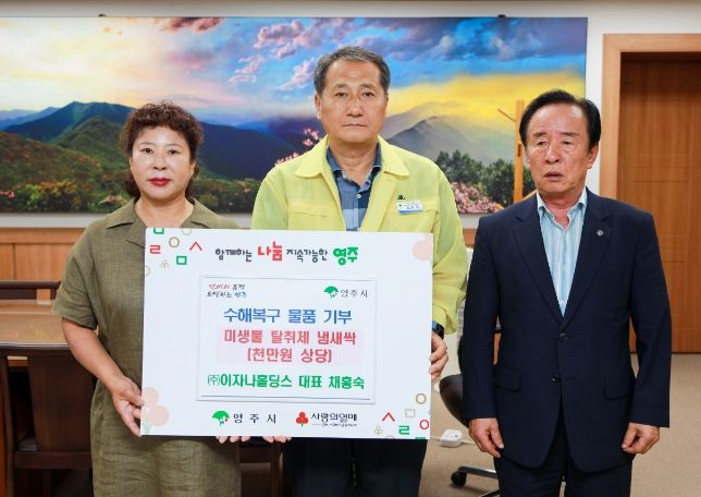 ㈜이자나홀딩스는 강원도 동해시 소재 천연 발효 전문 회사이다. 영주시는 이번에 기탁받은 물품을 수해 피해를 입은 가구 악취 제거를 위해 사용할 계획이다.