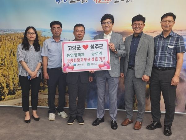 [제주교통복지신문 김강석 기자] 고령군 이원철 부군수와 농업정책과 직원, 성주군(군수 이병환) 서한교 부군수와 농정과 직원들은 성주군과 고령군의 발전과 번영을 응원하는 마음을 담아 고향사랑기부금 각 160만원을 상호기부했다.