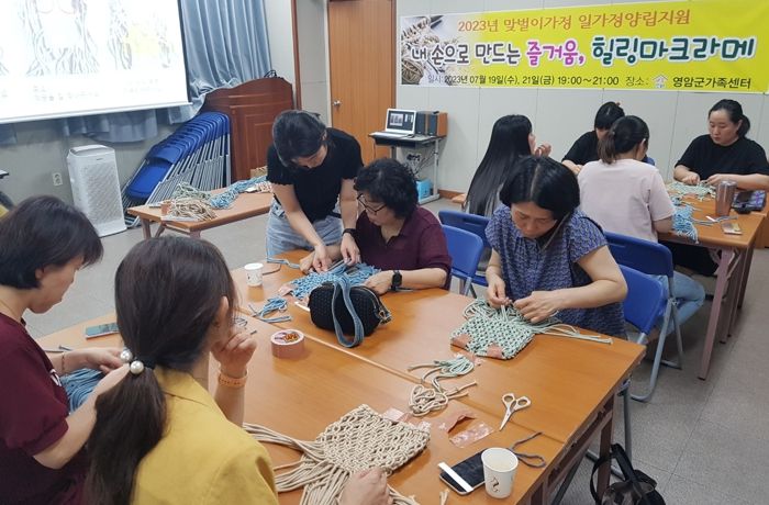 [제주교통복지신문 김강석 기자] 영암군가족센터가 19일, 21일 센터 교육장에서 맞벌이가정 일·가정 양립지원 프로그램의 하나로 ‘내 손으로 만드는 즐거움, 힐링 마크라메’를 진행했다.