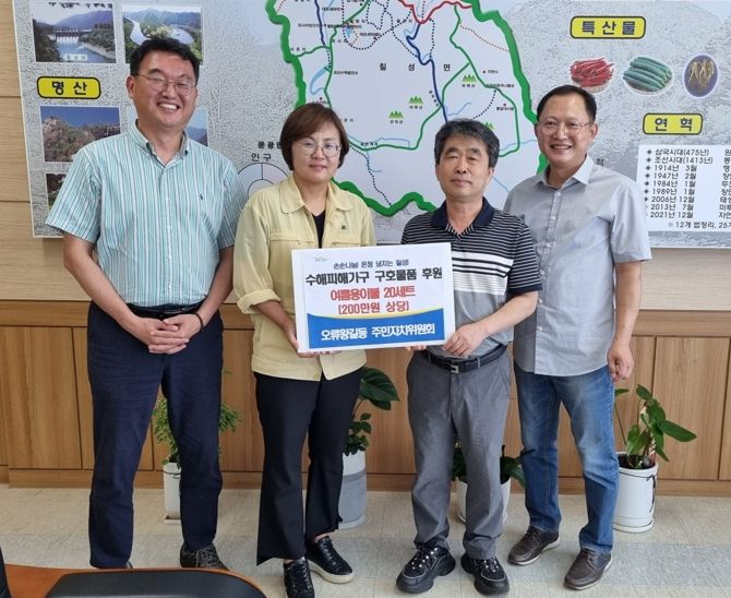 신미선 칠성면장과 박진호 주민자치위원장은 “예상치 못한 집중호우로 많은 주민이 피해를 봐 안타까운 상황”이라며 “온정의 손길을 보내준 오류왕길동 주민자치회에 감사드리며 성금은 수해 피해 가구를 위해 잘 사용하겠다”고 말했다.