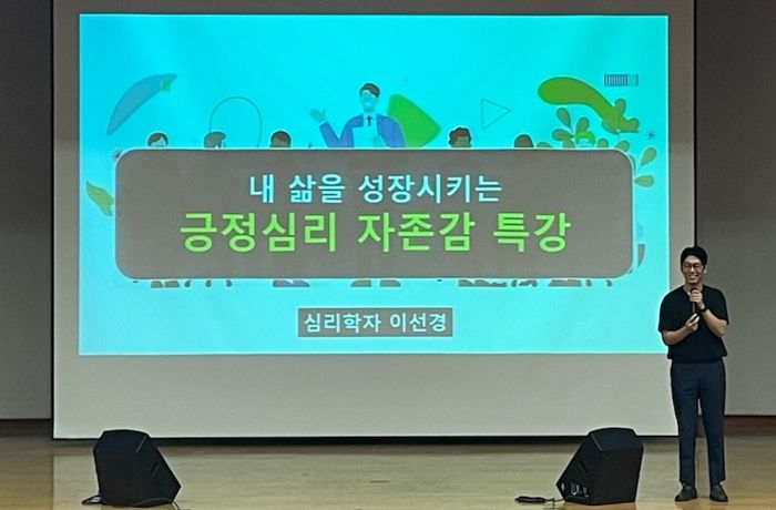 이번 교육은 심리교육전문가 이선경 강사를 초빙해 자존감과 자신감을 높이는 방법 등을 주제로 ‘긍정심리 자존감 특강’을 진행했다.