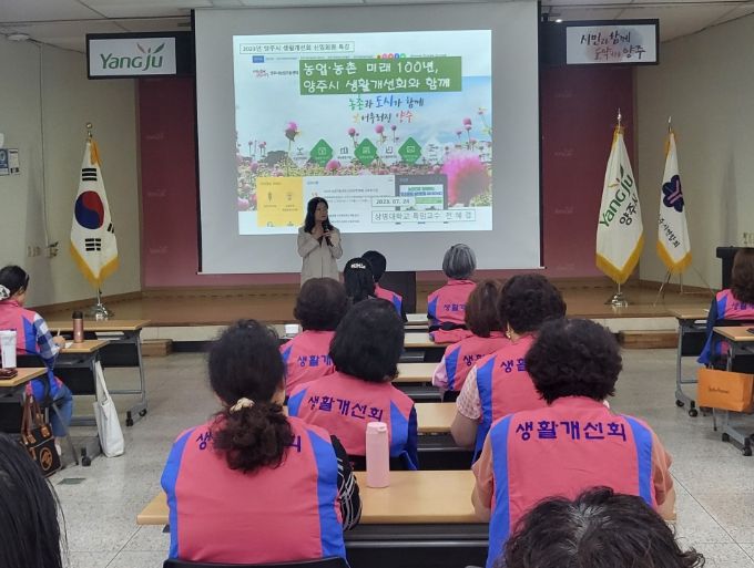 이날 교육은 생활개선회원 신입회원을 비롯한 33여 명의 회원이 함께하며 ‘농업·농촌 미래 100년, 양주시생활개선회와 함께’라는 주제로 前농촌진흥청 국립농업과학원장을 역임하셨던 상명대학교 전혜경 특임교수의 특강으로 진행했다.