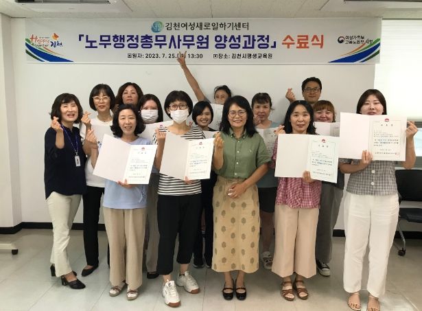 [제주교통복지신문 김강석 기자] 김천시평생교육원 여성새로일하기센터에서는 7월 25일 국비 공모사업으로 추진한 직업교육훈련 『노무 행정 총무 사무원 양성 과정』 수료식을 개최했다.