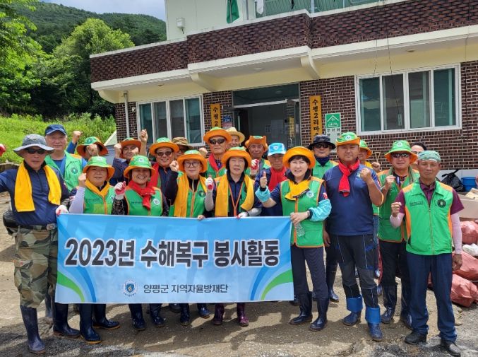 이번 활동은 양평군 지역자율방재단 15명과 가평군 지역자율방재단 20명의 합동으로 진행됐으며, 경상북도 문경시 동로면 수평2리 마을회관에 집결해 과수원 피해 정비, 수해 폐기물 처리, 훼손 시설물 보수 등 피해지역 복구작업에 힘을 보탰다.
