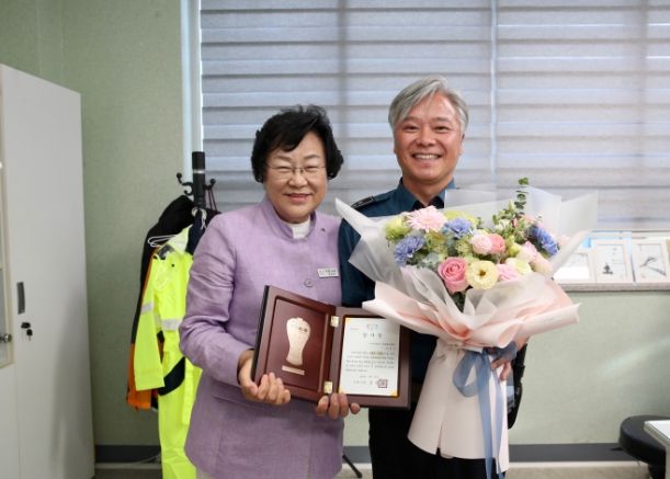 [제주교통복지신문 김강석 기자] 김경희 이천시장은 25일 장호원파출소를 방문하여 독거노인과 마을주민을 구한 의로운 경찰 고재중 경감에게 감사장을 수여했다.