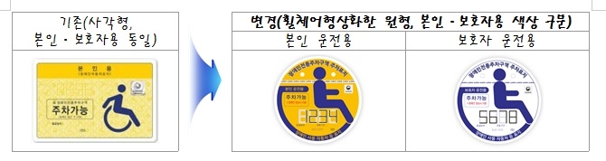 장애인 자동차 주차가능 표지 전면 교체 작업이 전국적으로 시행된다.