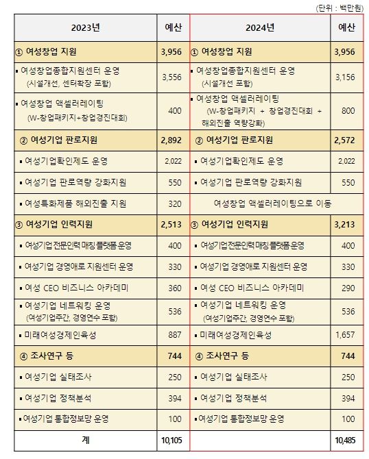 2024년 ‘여성기업육성사업’ 주요 내용은 다음과 같다.