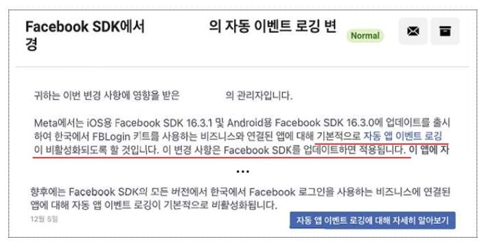 이에 개인정보위는 ’23.7.26.(수) 전체회의에서 메타에 자진 시정 기회를 부여하고, 그 이행 결과를 점검·확인하기로 결정하였다. 시정 기간인 3개월 경과 후 개인정보위가 확인한 결과, 메타는 한국에서 배포되는 ‘페이스북 로그인’ 관련 소스 코드의 기본값을 변경(전송→미전송) 출시하여 타사 행태정보가 자동 전송되지 않도록 하였고, 관련한 페이스북 개발자 페이지를 수정하였으며, 기존 ‘페이스북 로그인’을 설치한 사업자에게도 개별 전자우편을 통해 업데이트 등을 안내한 것을 확인하였다.
