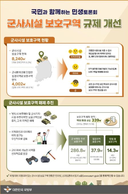 향후에도 국방부는 보호구역 제도의 큰 틀을 유지하되, 군·지자체·주민 간 적극적인 소통을 통해 국민 불편이 최소화될 수 있도록 보호구역 해제·완화를 적극적으로 추진할 것이라고 전했다.