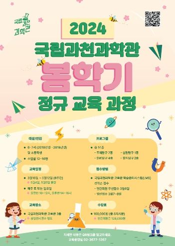 봄학기 정규교육과정 접수는 3월 7일부터(연간회원은 3월 6일부터), 비대면 교육 서비스‘과학이 또옴’접수는 3월 13일부터 국립과천과학관 교육관 온라인학습관리시스템에서 시작되며 상세 내용은 국립과천과학관 누리집에서도 확인할 수 있다.