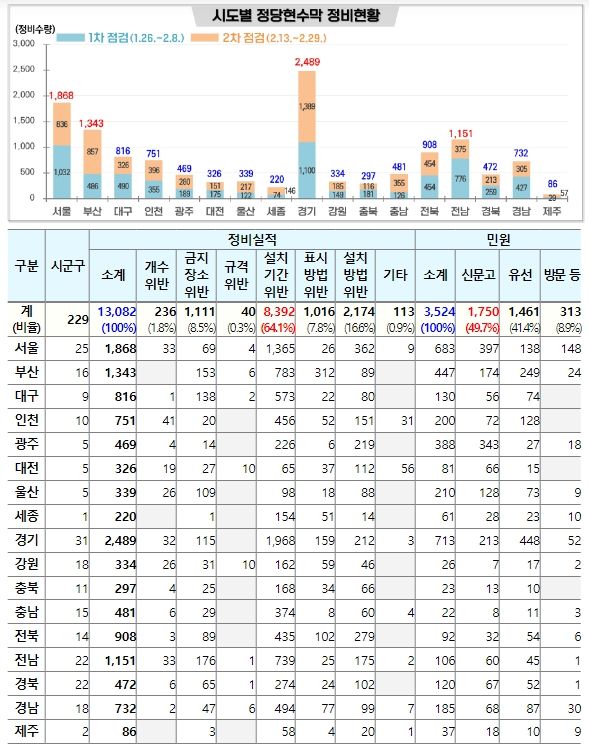 민원은 총 3,524건이 접수됐고, 안전신문고를 통한 신청이 절반(1,750건)을 차지했다. 민원 건수는 설 연휴 전에는 2,064건이 접수됐으나 정비가 본격 진행되면서 설 연휴 후에는 1,460건으로 30% 감소했다.