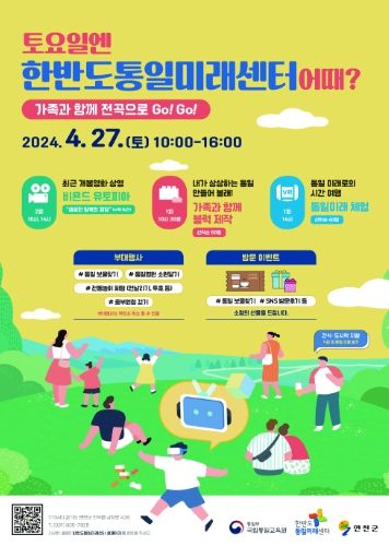 [제주교통복지신문 박상현 기자] 통일부 국립통일교육원 한반도통일미래센터(경기도 연천군 전곡읍 소재)는 4월 27일을 시작으로 매월 한 차례 국민 누구나 참여할 수 있는 개방 행사를 진행한다고 밝혔다.