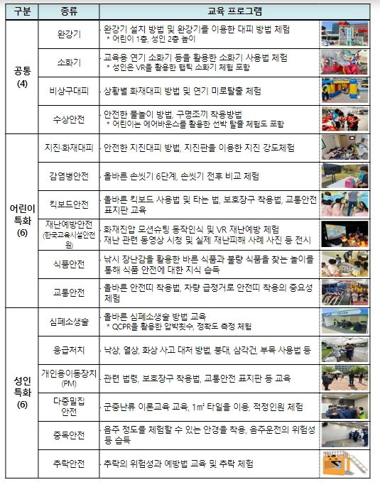 특히, 어린 시절부터 각종 안전사고에 대한 대처 능력을 키우는 것이 매우 중요한 만큼, 안전체험교육 참여 인원을 전년 대비 2만 명 증가한 5만여 명 목표로 확대 운영한다.